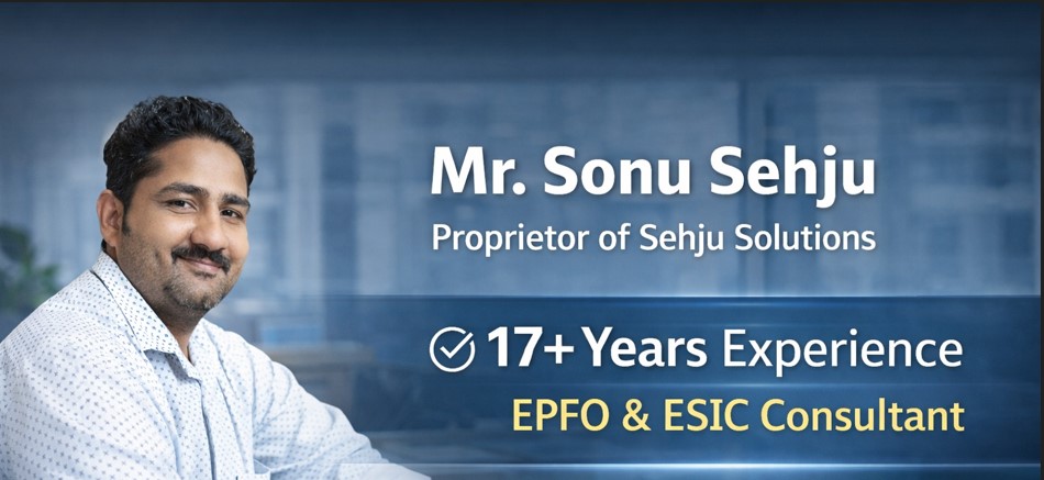 Sehju Solutions के प्रोप्राइटर Mr. Sonu Sehju हैं, जिन्हें EPFO और ESIC कार्यों में 17 वर्षों से अधिक का वास्तविक और व्यावहारिक अनुभव प्राप्त है।